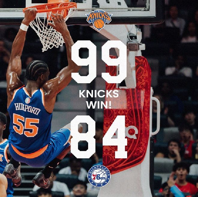 讲讲NBA季前赛,首战尼克斯99-84击败没有乔治&恩比德的费城。
