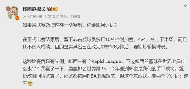 所以据国内知名媒体人爆料,CBA新赛季准备在正式比赛结束后,提供10分钟的时间用于两队的非首发球员PK,且不计入成绩。
